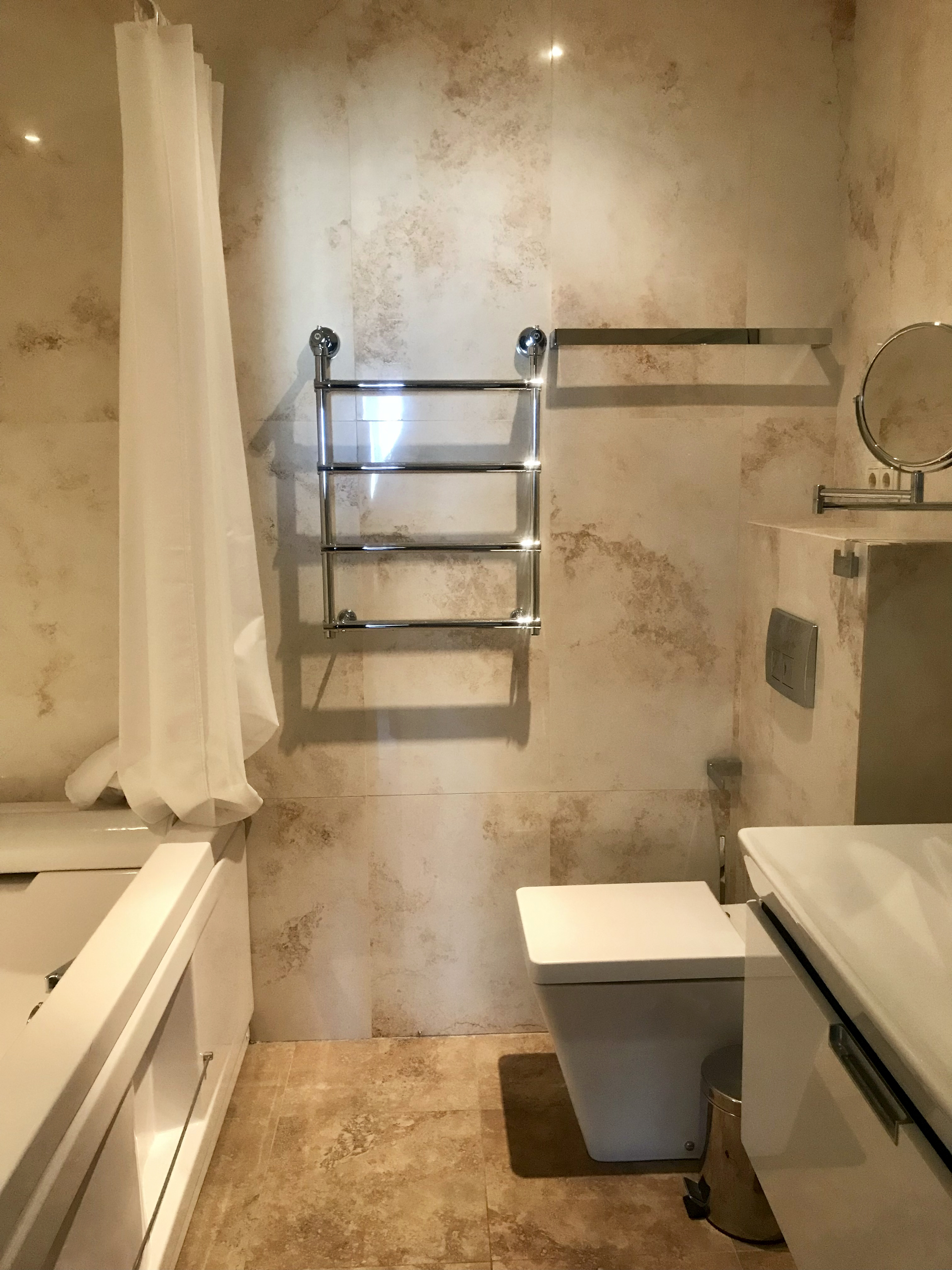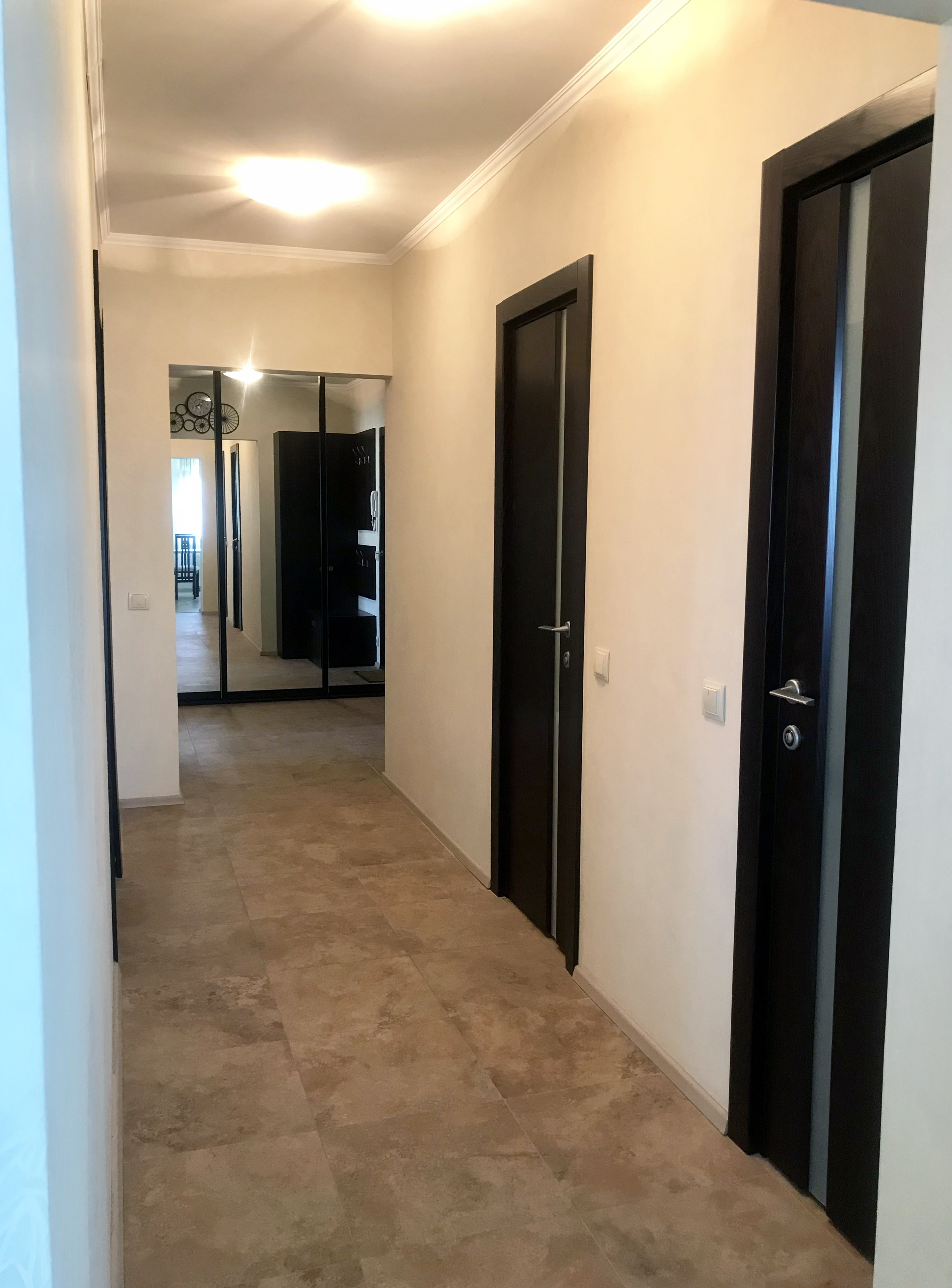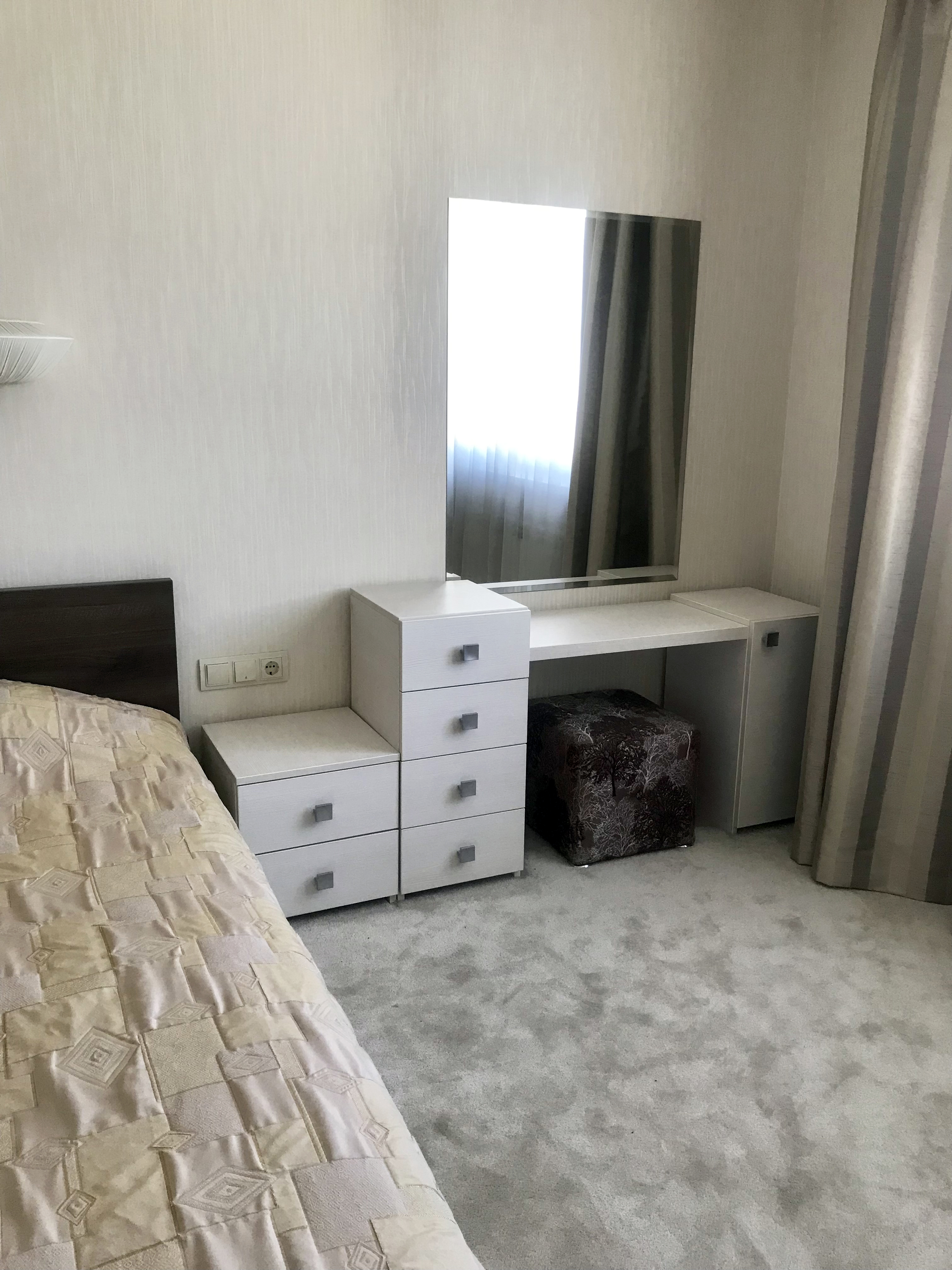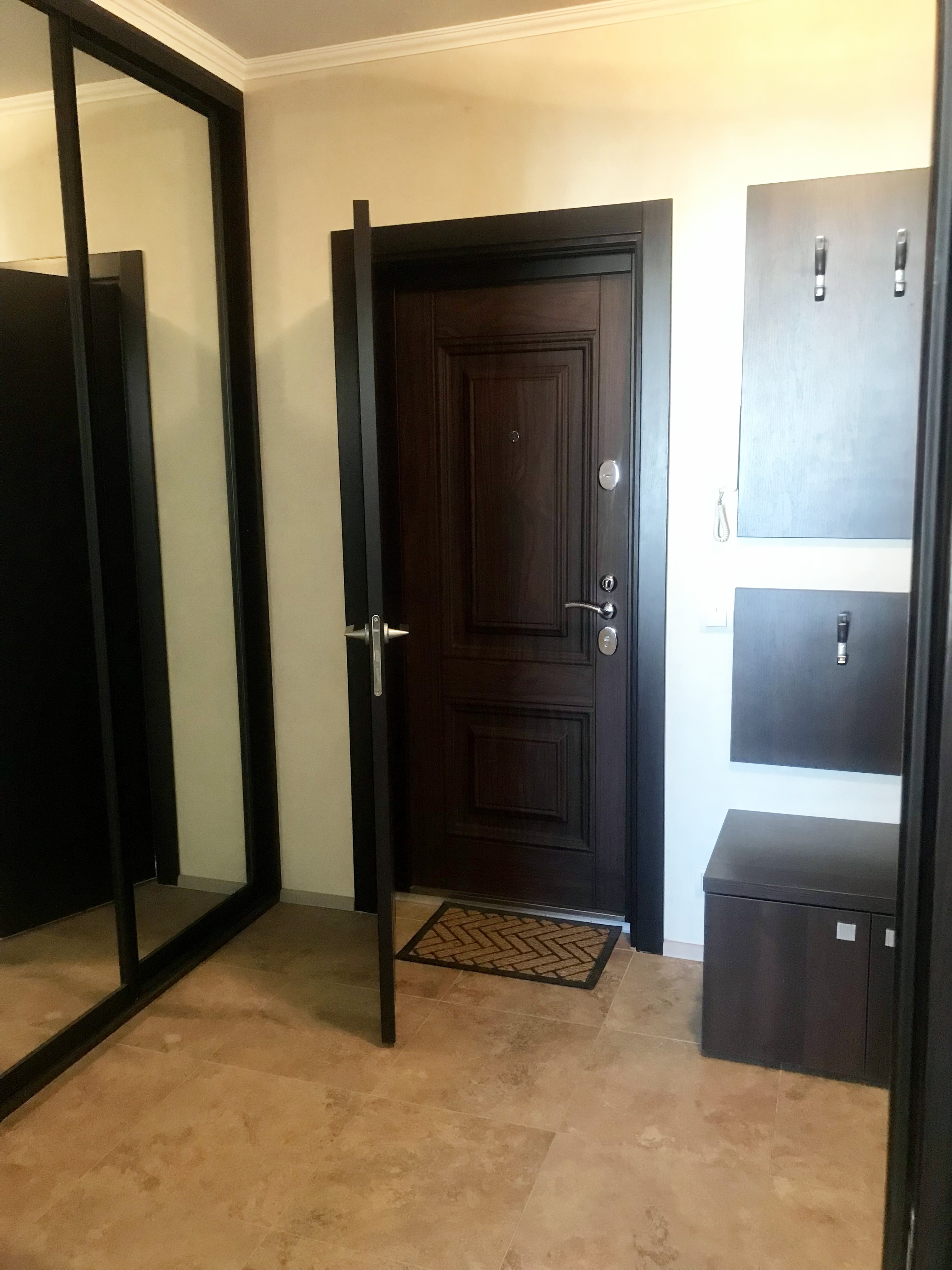 Квартира состоит из большой кухни-гостиной, двух изолированных комнат, имеет три балкона, один из которых - десятиметровый панорамный остекленный. Готова к проживанию: хороший ремонт, текстиль, светильники, полностью меблирована, оборудована современной бытовой техникой, сантехникой и джакузи известных мировых производителей.