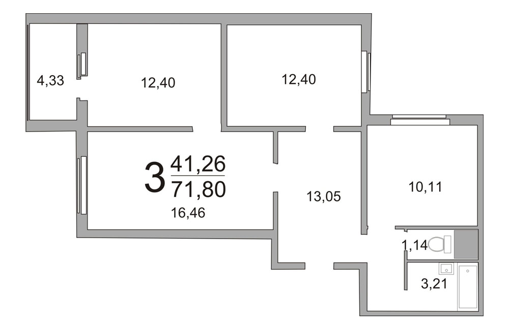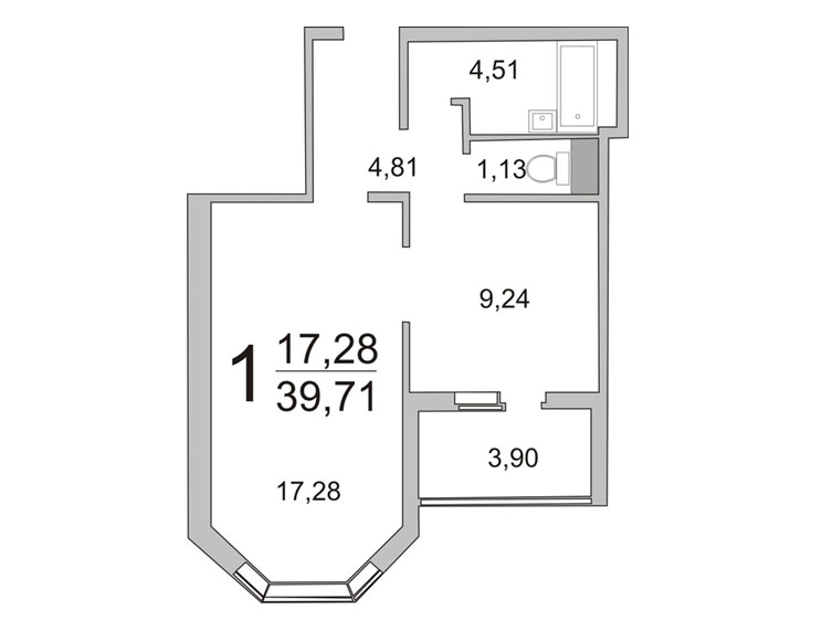 Площадь лоджии: от 3,90 кв.м. до 4,33 кв.м.