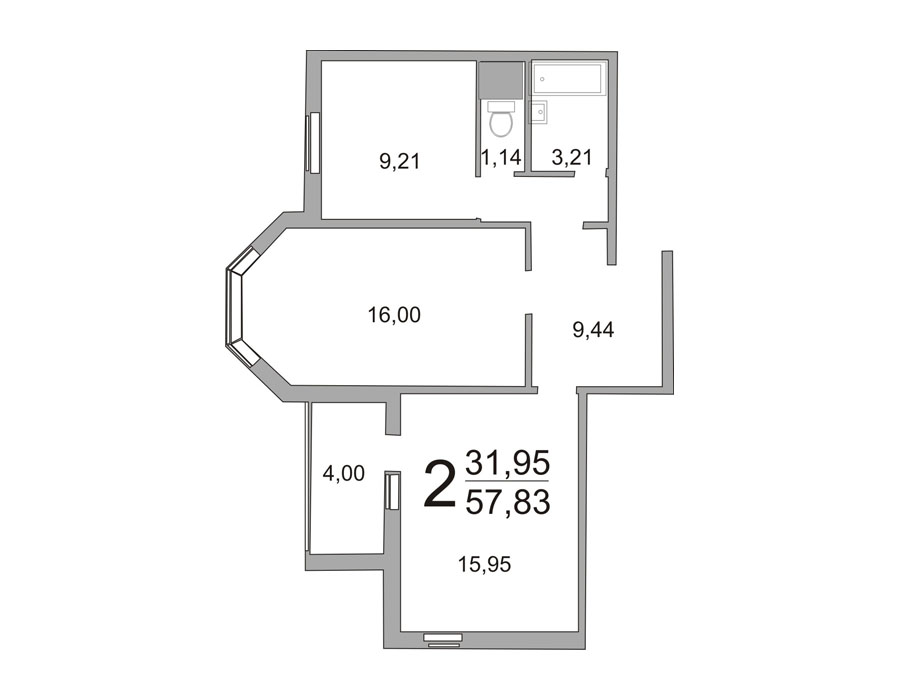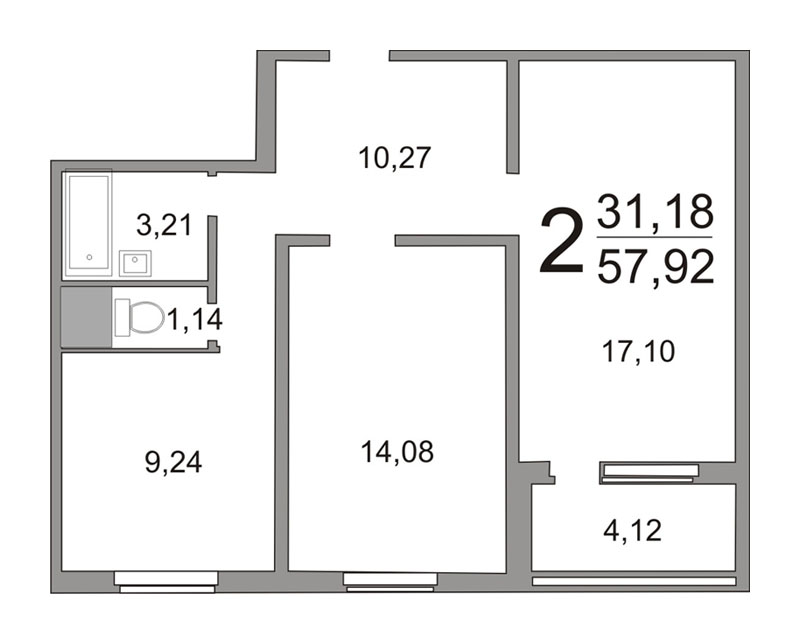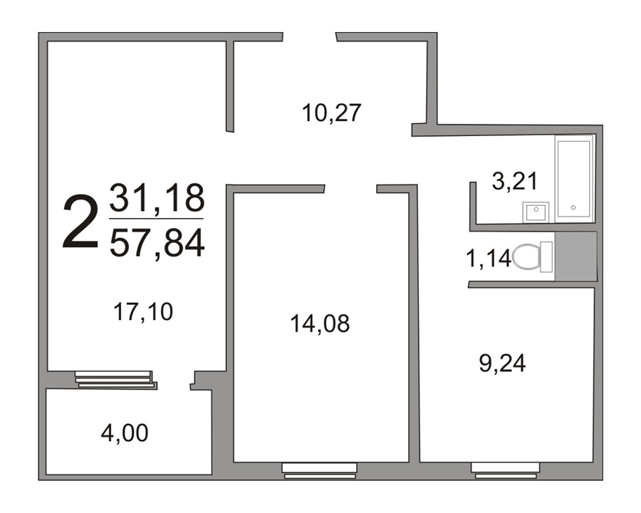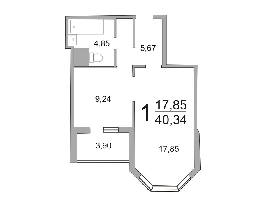 Площадь санузла: от 3,21 кв.м. до 4,85 кв.м.