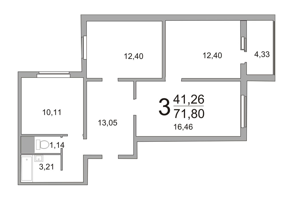 Трёхкомнатные квартиры имеют кладовые комнаты