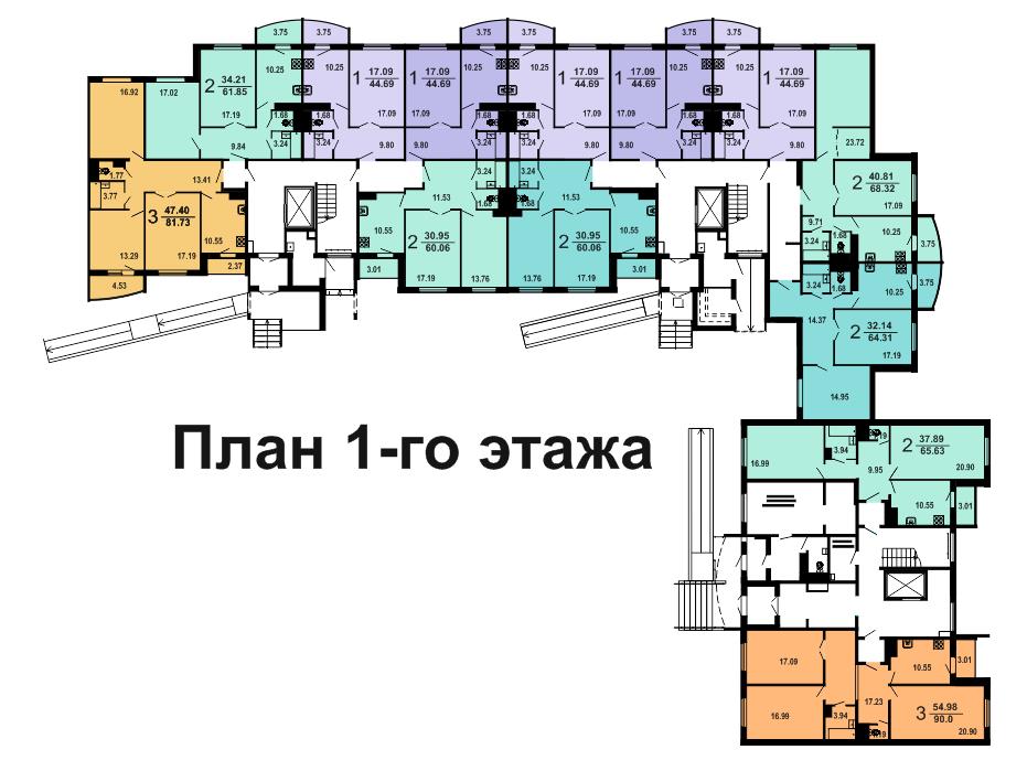 | Подъезд 1 | Подъезд 2 | Подъезд 3 | |||||||||||||||