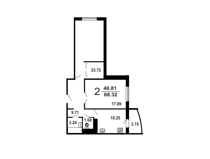 2-ком. квартира: 67,87 / 40,81 / 10,25 кв. м