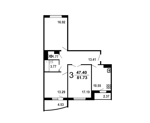 3-ком. квартира: 81,73/ 47,40/ 10,55 кв. м